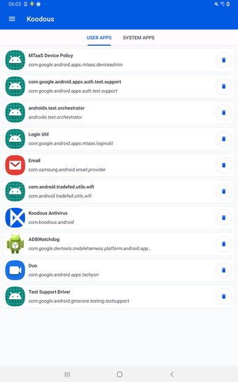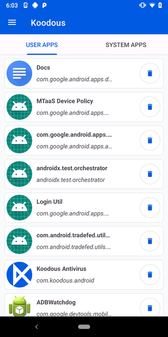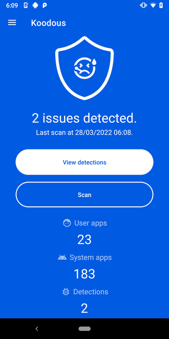 Koodous Antivirus för Android är en helt gratis app som håller dig säker från skadliga appar som trojaner, virus eller störande annonser. Detta görs genom att analysera och upptäcka skadligt beteende i tusentals Android-applikationer.